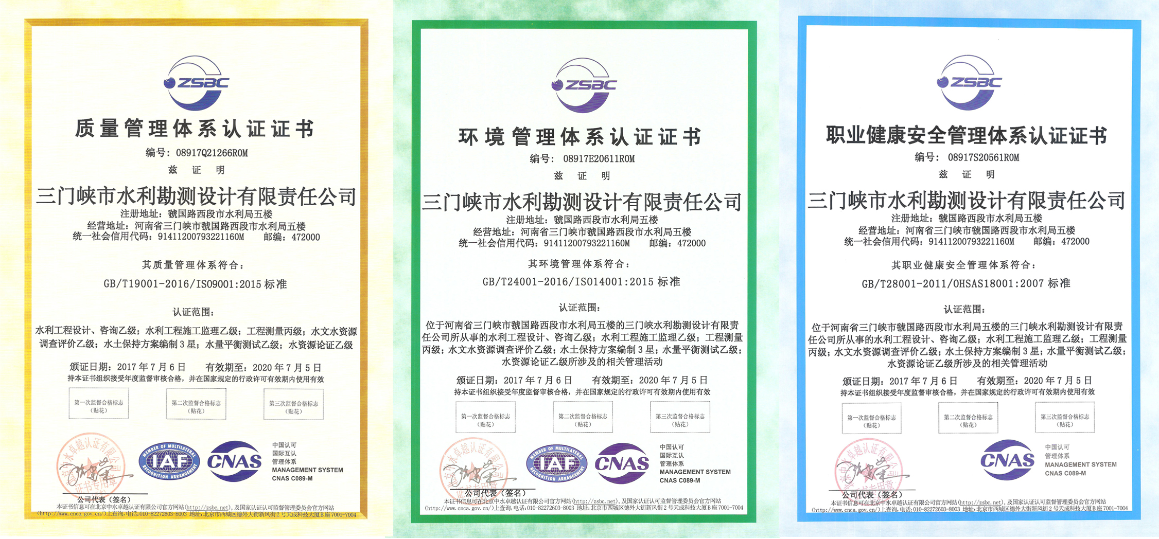 7月6日,我公司順利取得由北京中水卓越認證有限公司頒發的ISO9001:2015質量體系、ISO14001:2015環境管理體系認證和OHSAS18001-2007職業健康安全管理體系認證證書。