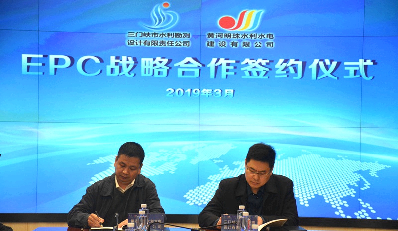 最后,在三門峽水利樞紐管理局和三門峽市水利局領(lǐng)導(dǎo)的見證下,張文敏和周三超分別代表雙方企業(yè)簽署了EPC戰(zhàn)略合作協(xié)議。