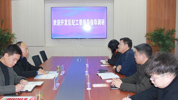 1月14日上午,中共三門峽市紀委經濟開發區工作委員會李社會副書記、宋林鋒主任一行蒞臨我公司調研指導,公司副總經理胡作龍、朱烜東、財務總監黃文等出席座談會。