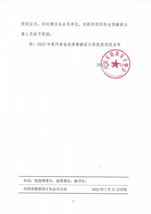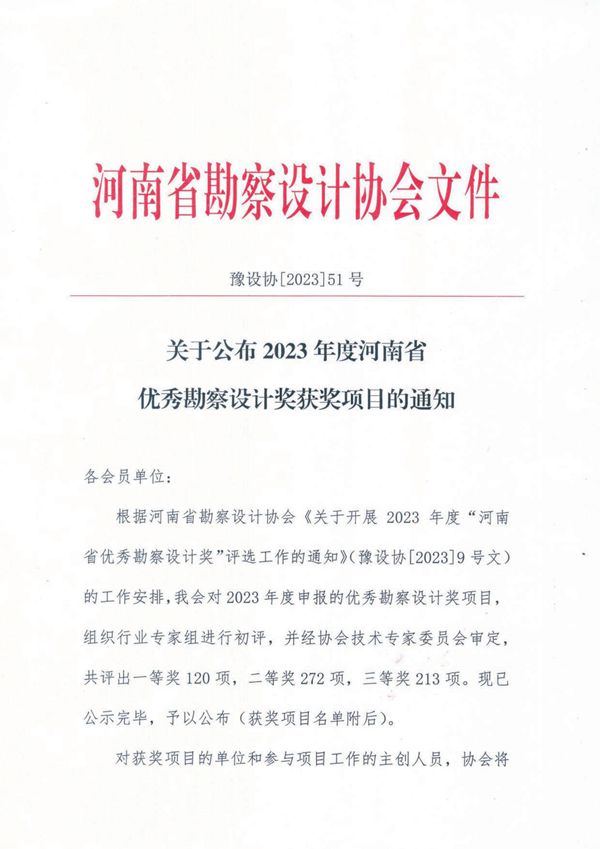 2023年度河南省優秀勘察設計獎