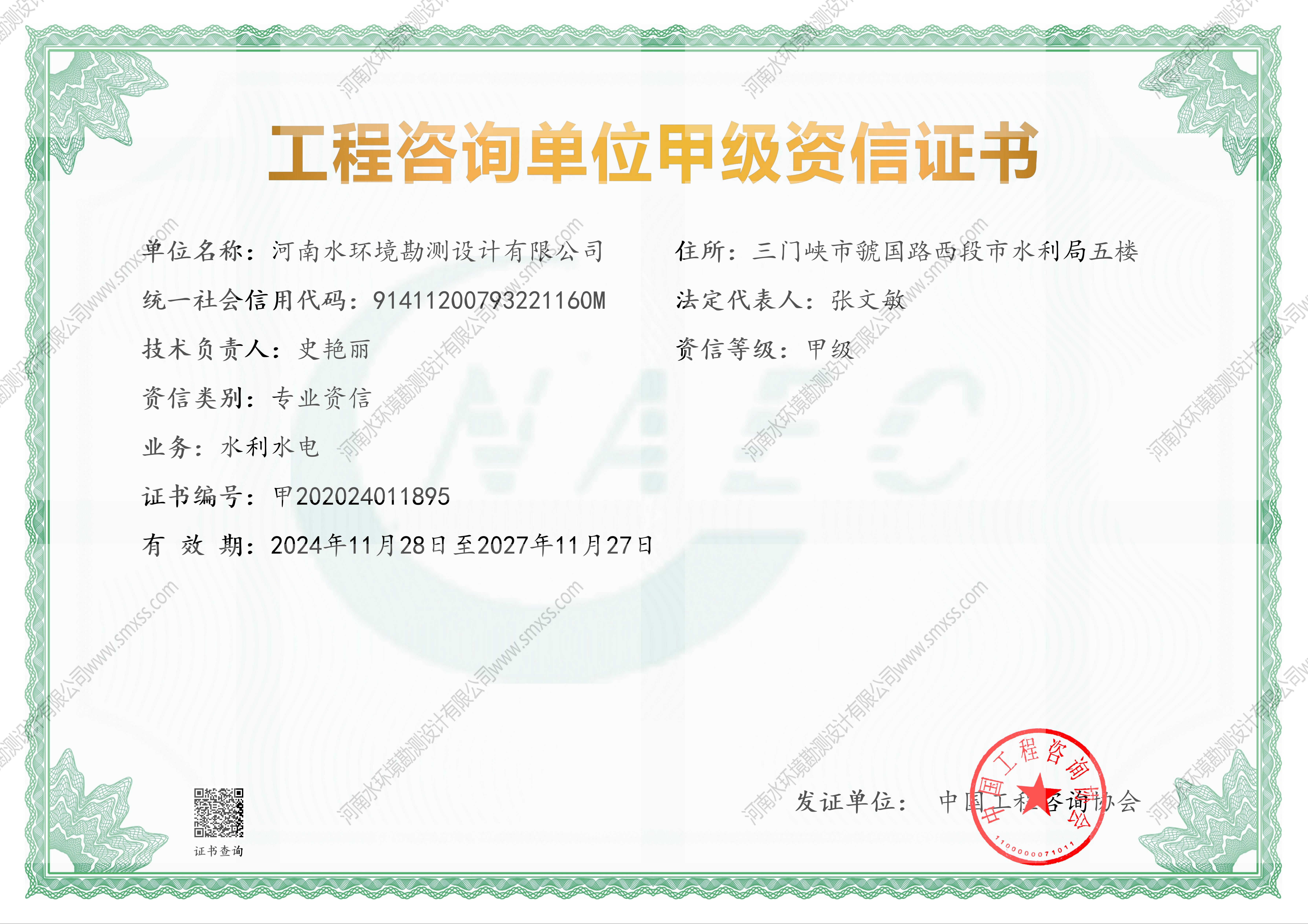 工程咨詢單位咨信證書