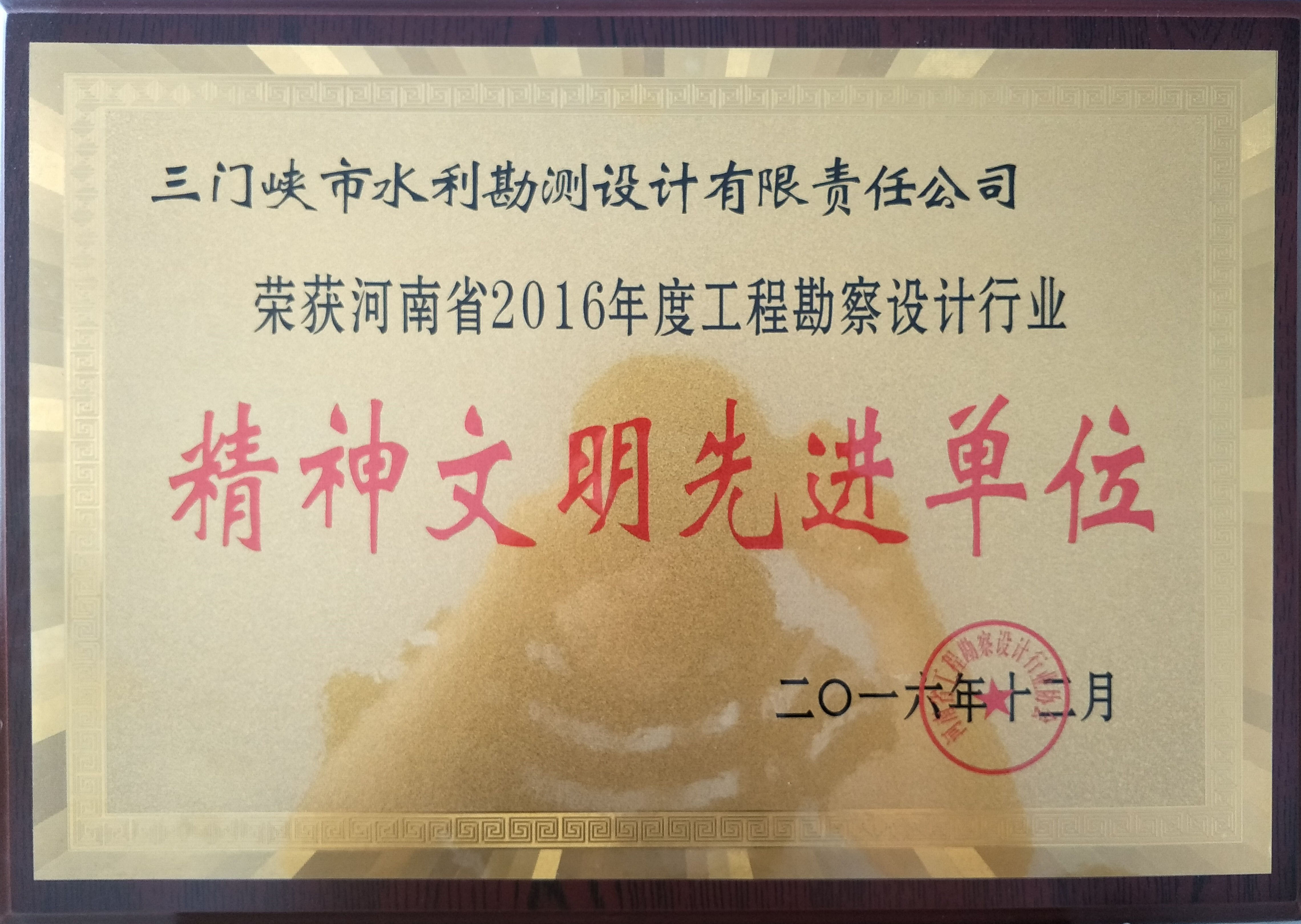 2016年省工程勘察設計行業精神文明先進單位
