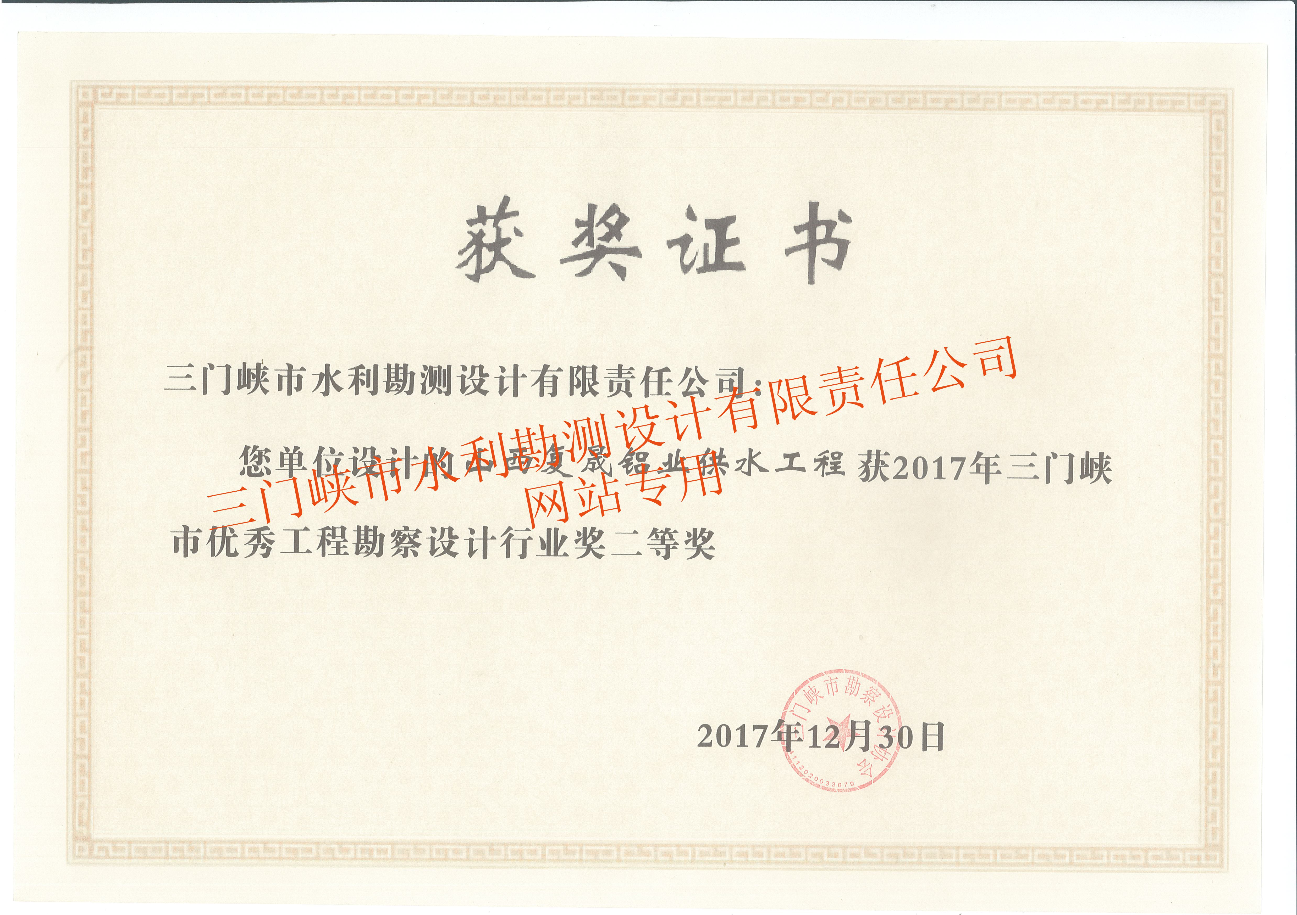 山西復晟鋁業供水工程獲市優秀工程勘察設計行業獎二等獎